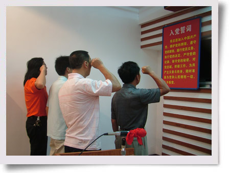 7月1日下午,湖南湘東化工機械有限公司舉行新黨員入黨宣誓儀式,新黨員在黨旗下莊嚴宣誓,“我志愿加入中國共產黨。。。。。。”。目前,湘東化機共有黨員598人,其中,具備大專以上文化黨員136人,生產一線黨員110人。 湘東化機始終把基層黨組織建設作為組織工作重點,圍繞“深入學習實踐科學發展觀,為黨旗增輝,促進公司又好又快發展”這一主題,以慶祝黨的生日為契機,組織開展 “爭先創優”等形式多樣的活動,鼓勵廣大黨員積極投身于公司的各項工作,進一步形成學榜樣、趕先進的濃厚氛圍。 在新黨員入黨宣誓大會上,廣大黨員表示:要牢記黨的宗旨,保持共產黨員先進性,繼承和發揚黨的優良傳統和作風,不斷提高自身的思想覺悟,團結一心,努力工作,更好地發揮黨員的先鋒模范作用,為創造公司美好的明天而奮斗。湘東化機黨委書記林德晃殷切希望廣大黨員要時時刻刻嚴格要求自己,刻苦學習,愛崗敬業,積極進取,甘于奉獻,以滿腔的熱血,付諸于積極行動,為企業的建設發展努力奮斗,以自己無悔的青春向黨組織交上一份滿意的答卷。(王慧卉)