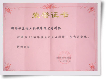 近日,自株洲市科學(xué)技術(shù)協(xié)會傳來消息,湖南湘東化工機械有限公司科協(xié)被評為2010年度全市企業(yè)科協(xié)工作先進集體。(王慧卉)