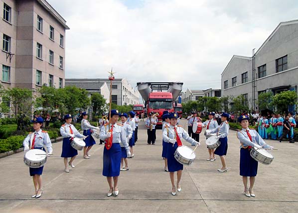 6月25日,在歡快的鑼鼓聲和秧歌舞中,湖南湘東化工機械有限公司承攬制造的神華呼倫貝爾褐煤提質項目關鍵設備整裝發車,提前10天交貨 運往內蒙古。